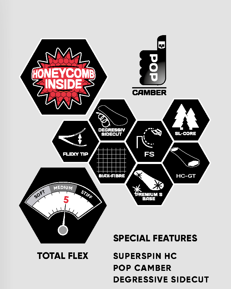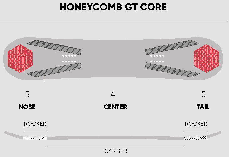 노즈와 테일에 배치 된 허니컴 코어는 경량과 동시에 탄성을 더 강하게 합니다.